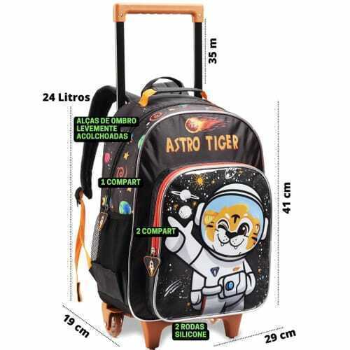Esta mochilete versátil pode ser utilizada tanto como mochila tradicional quanto como carrinho, adaptando-se às necessidades do seu pequeno astronauta. Ideal para o uso diário na escola, passeios ou viagens, ela combina com uniformes e roupas casuais, garantindo um look divertido e prático.